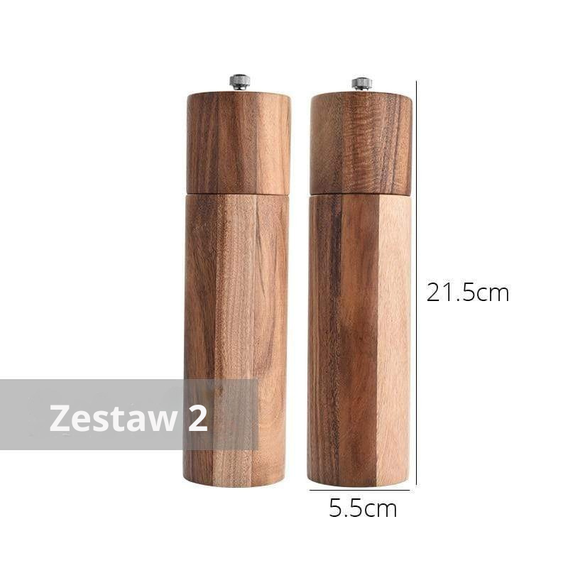 Piękne młynki do soli i pieprzu z drewna akacjowego