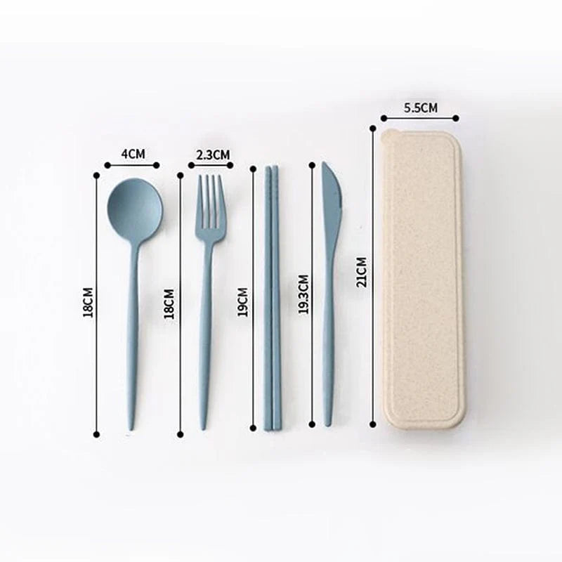 4 × komplety sztućców (widelec, łyżka, nóż, pałeczki)